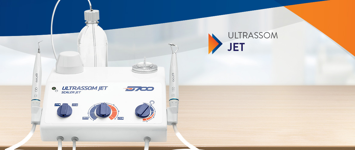 Aparelho conjugado de ultra-som piezoelétrico e jato de bicarbonato de sódio para profilaxia do cálculo e do biofilme não mineralizado.